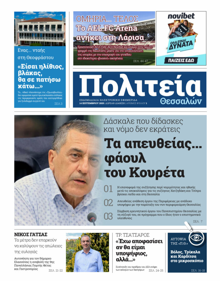 Διαβάστε στην «Πολιτεία Θεσσαλών»