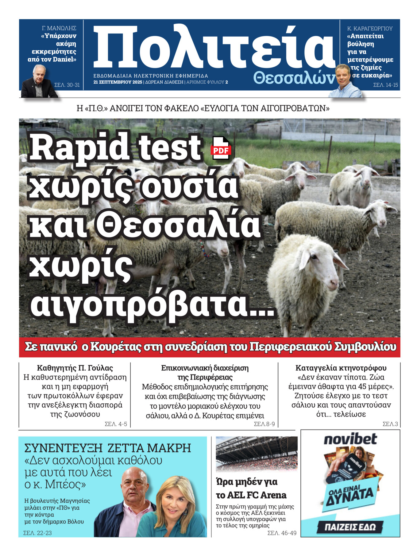 Rapid test χωρίς ουσία και Θεσσαλία χωρίς αιγοπρόβατα…